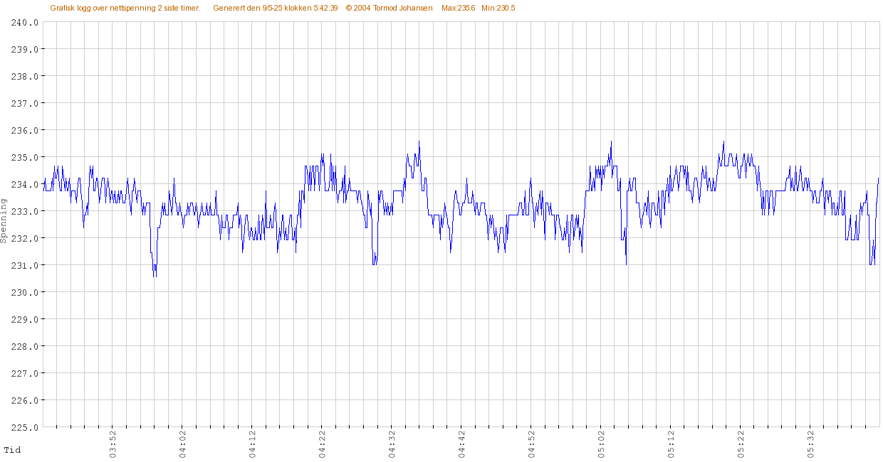 Spenningslogg siste 2 timer
